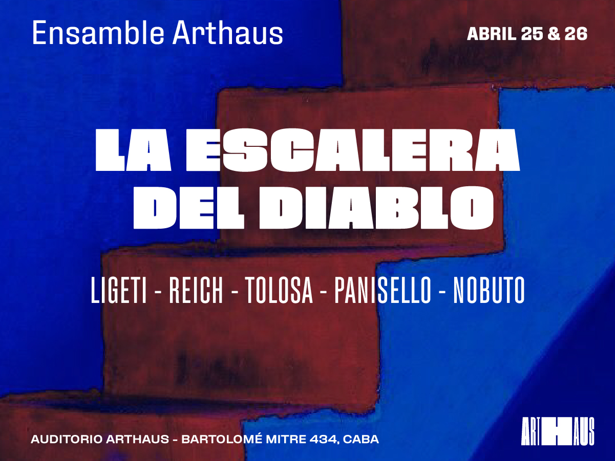 II. La escalera del diabloLigeti – Reich – Tolosa – Panisello – NobutoAbril 25 & 26EntradasAuditorio Arthaus PROGRAMACION PASADA Director General: Andrés BuharDirector Música: Daniel D´AdamoDirector Música: Lucas FaginCoordinadora Música: Beatriz Quinteiro